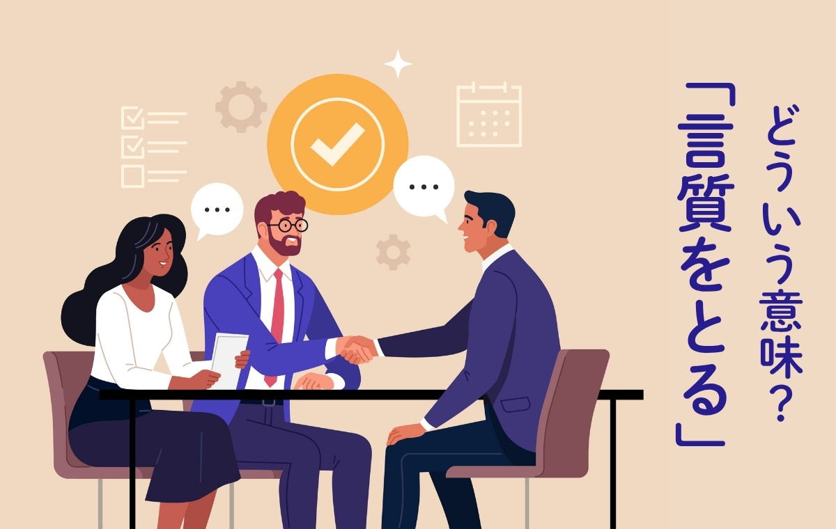そもそも「言質」とは、「あとで証拠にできる言葉」のこと。契約を反故にされたり合意内容をひっくり返されたりしないように、約束の裏付けとして用いられます。