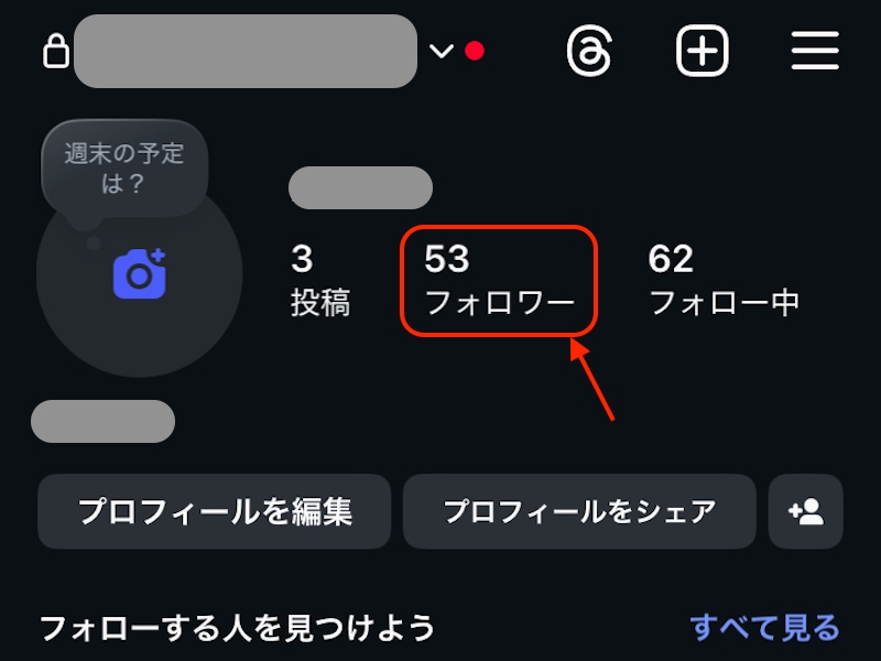 1. ホーム画面にあるハートマークの通知かプロフィール画面の「フォロワー」をタップ