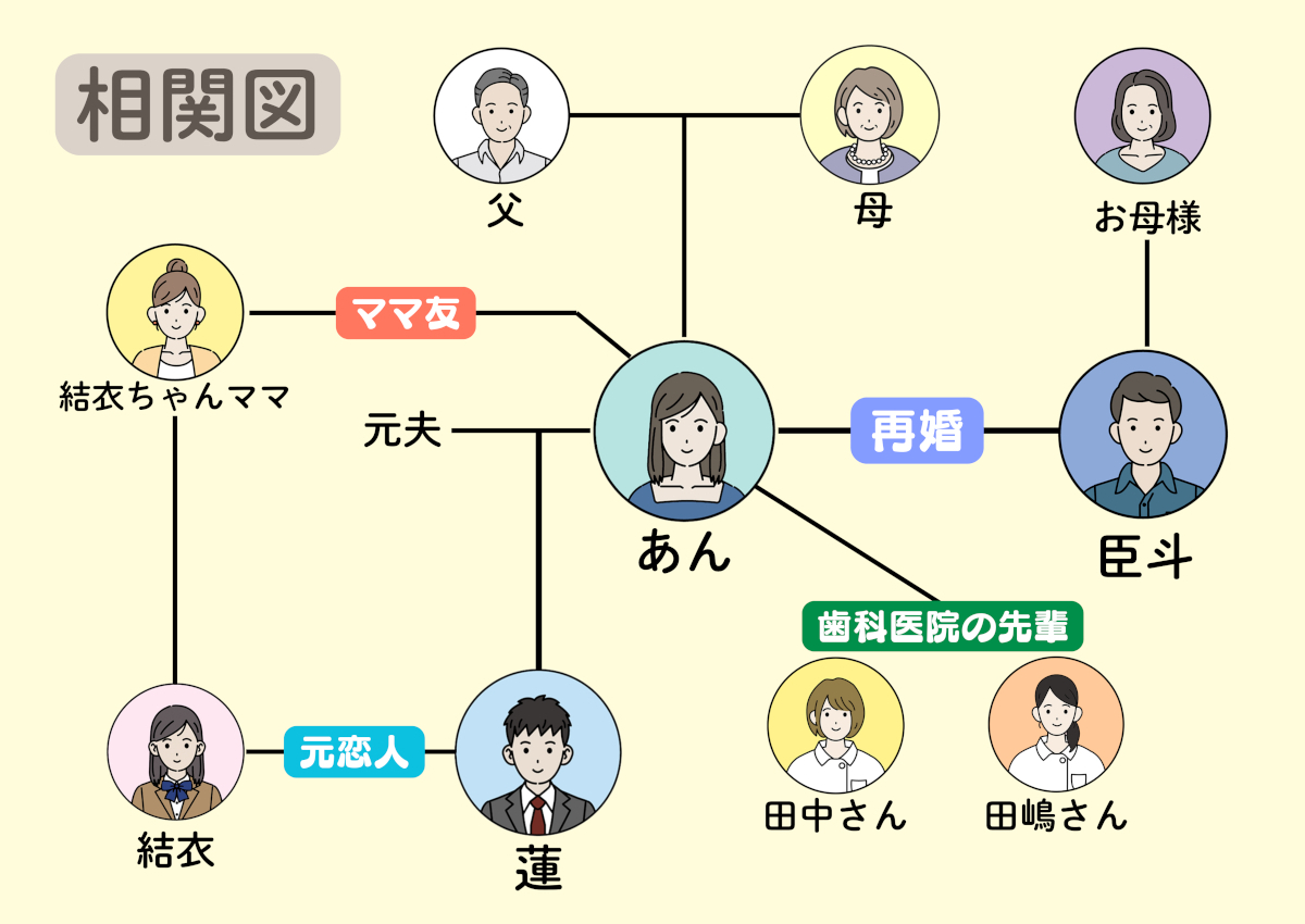 あん(私)…シングルマザー8年目にして5歳年下の男性と結婚。夫の会社の経理担当。41歳。