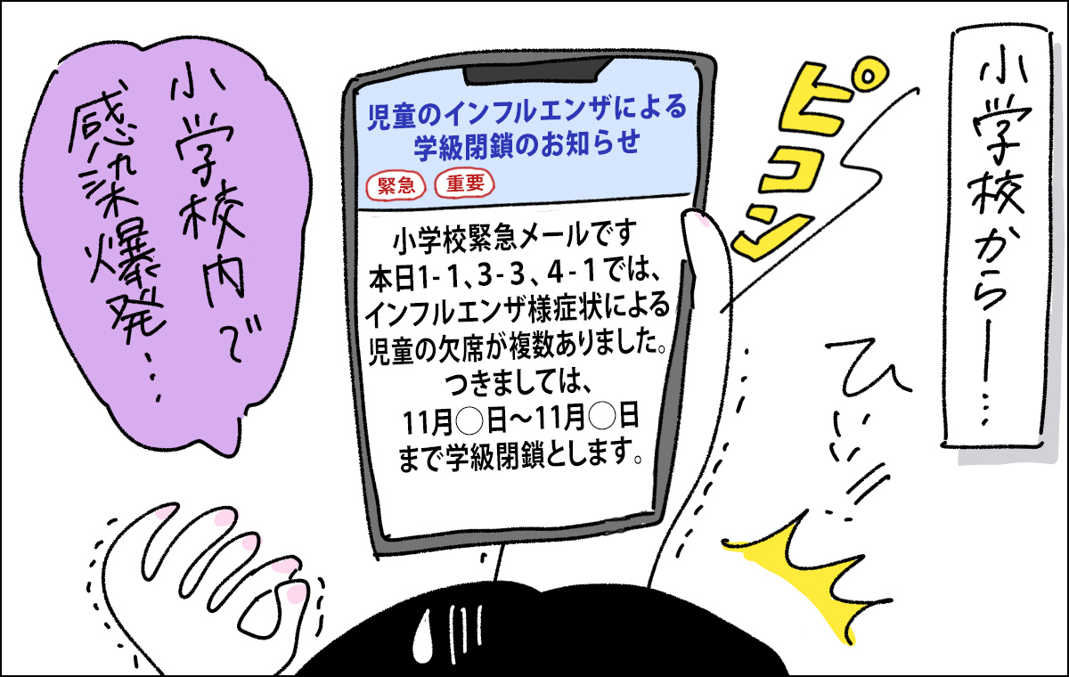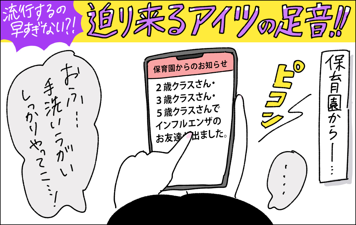 働くママなら誰もが一度は経験したことのある、思わず「わかる~!」と叫びたくなるようなエピソード= 「#ワーママあるある」。自身も2児の母であるイラストレーター・カミナカ ケロヨンさんがリアルなエピソードを4コマ漫画にしてお届け! 今回は、迫り来るインフルエンザの流行について。