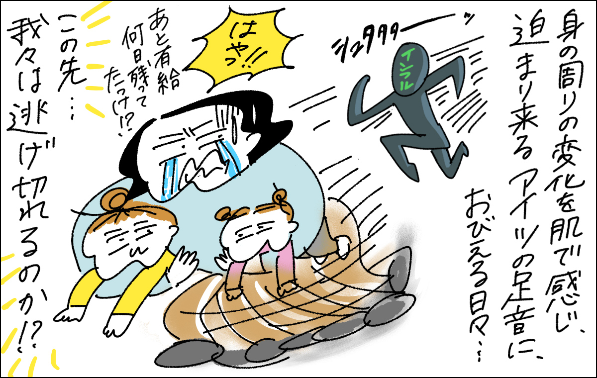 今季は早くからインフルエンザの流行が始まっていて、恐怖に怯えている日々。作者のカミナカケロヨンさん宅でもその恐ろしさをひしひしと感じているようで…。