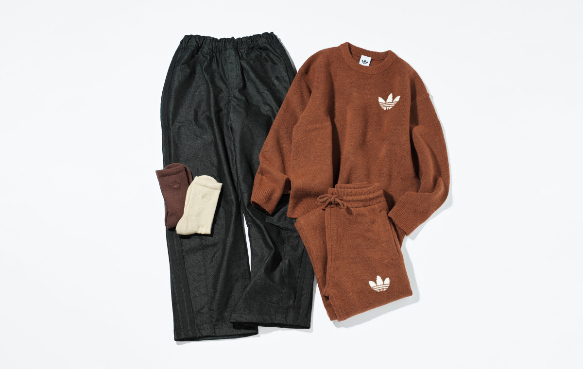 ▲写真右:ボトムス・シューズ/アディダス、写真左:トップス・ボトムス・シューズ/アディダス