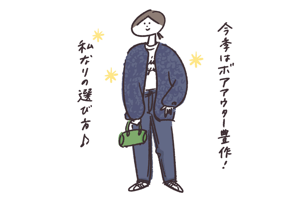 それが、もこもこしたボアアウター。本格的なウールコートやダウンジャケットを着る前に、気軽に羽織れる一枚がほしいと思っていたのですが、昨年はそれに気づくのが遅すぎて。ほしいものに出合えないまま、冬が終わってしまいました。だから今年こそは!と、割と早い時期に購入しました。
