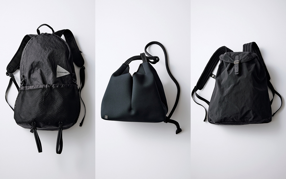 2025年2月号の表紙で使用して、多数の問い合わせがあった〝アンドワンダー〟のリュック。きれいめ派はまず黒を選んで。