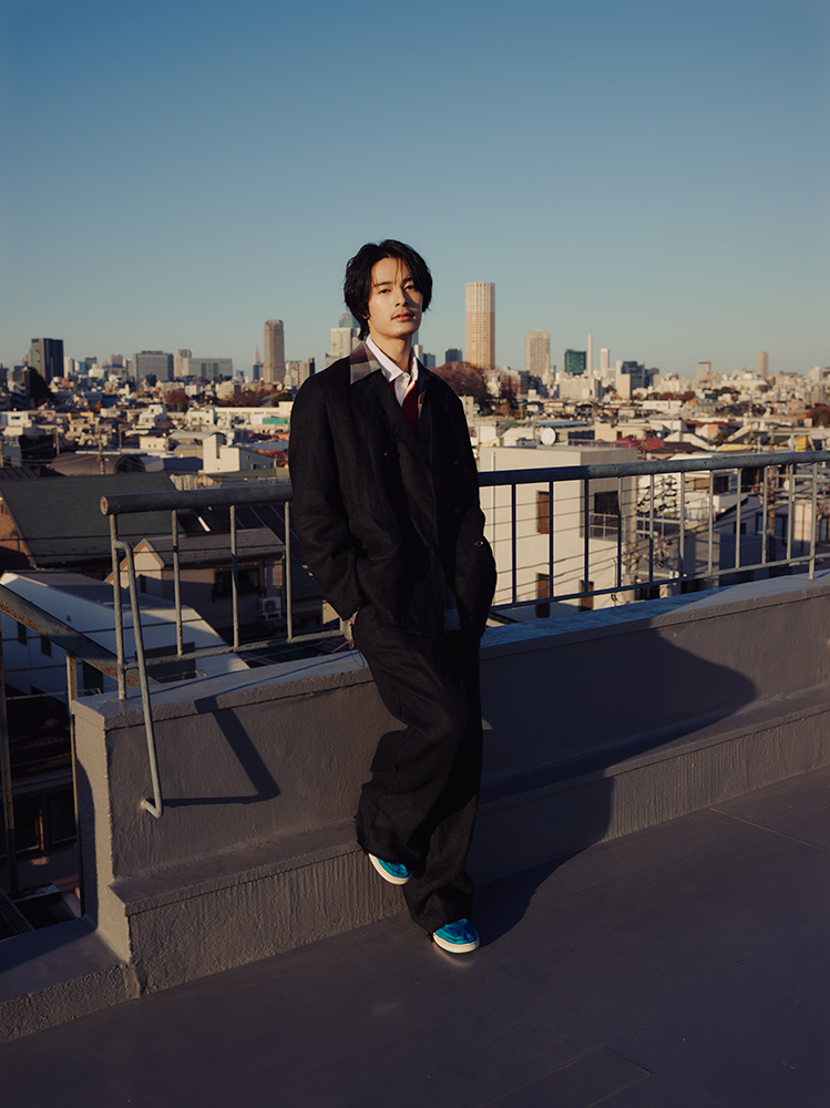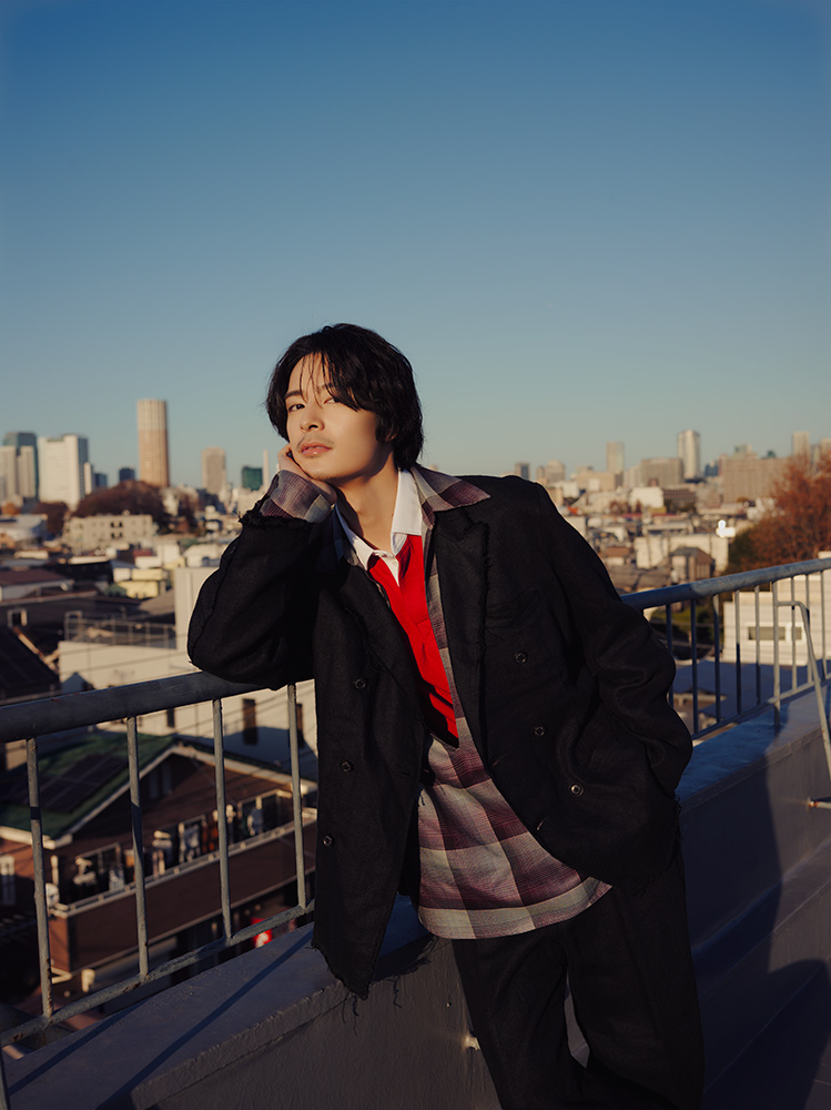 ジャケット ¥60,500 ・パンツ ¥38,500(GORAIKOU〈TUITACI THE FIRST DAY〉) スキッパーシャツ ¥42,900 (林デザイン事務所株式会社〈SUGARHILL〉) ラガーシャツ ¥36,300 (NOAH CLUBHOUSE〈NOAH〉) その他/スタイリスト私物