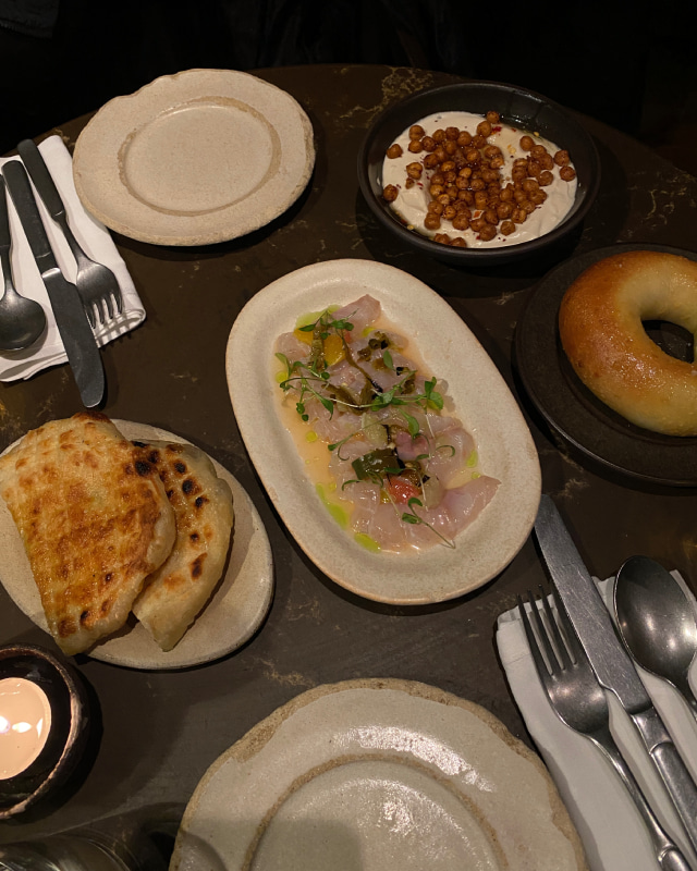 ロンドンのバラ・マーケット近くにある「OMA」は、今っぽくて肩肘張らないギリシャ料理が楽しめるお店です。薪火や炭火を使った料理が多くて、素材の味を楽しめて最近よく足を運びます。私のお気に入りは、焼きたてのナンのようなブレッドとひよこ豆のディップ。香ばしいパンと濃厚なディップの相性がよく、永遠に食べられます♪