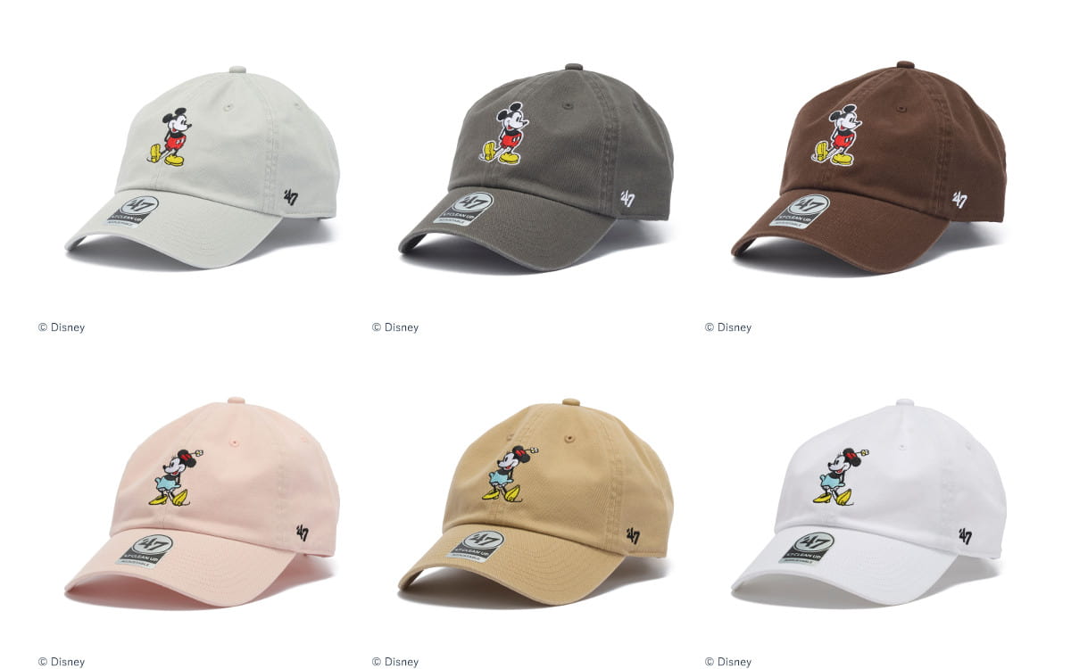 昨年よりカラーバリエーションを拡充して展開される「ディズニーデザインコレクション」。’47らしいナチュラルな色合いを基調に、服装やシーンを選ばず日常に自然と馴染むカラーパレットで、ミッキーマウスは7色、ミニーマウスは3色をラインナップします。