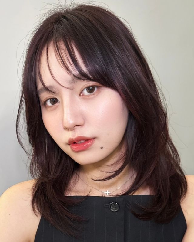 耳より前とトップにたっぷりレイヤーを入れているので、乾かすだけでもレイヤーを活かした動きを出すことができます。レイヤースタイルですが、ベースには厚みを残しているためまとまり感が満点。前髪からサイドバングにかけてのナチュラルなつながりが、女性らしさを引き立てながら小顔見せを叶えます。