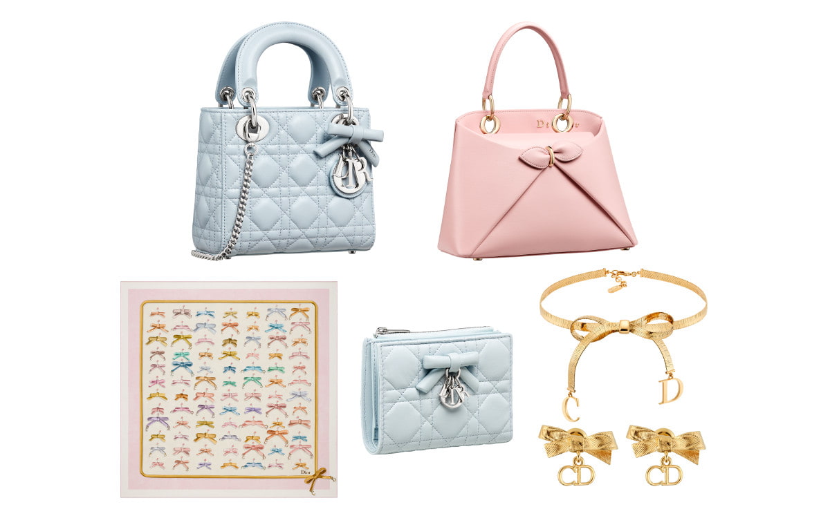 また、ボウと“CD”シグネチャーを組みわせたジュエリーや、ボウを描いたスカーフなど、アクセントになる小物も充実しています。