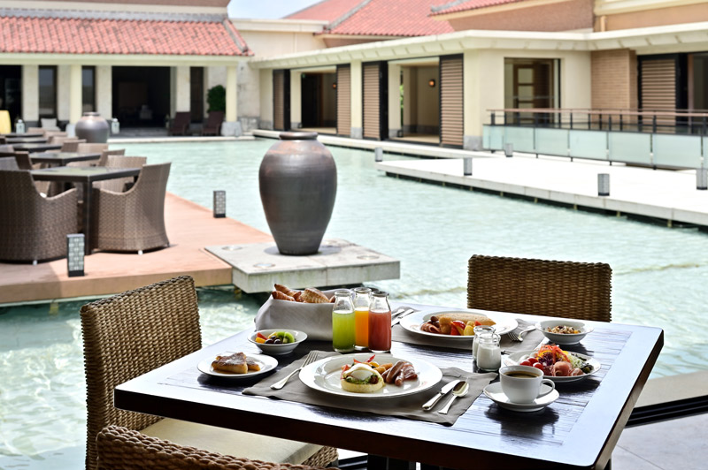 「コースビューのゲストルームは開放感が最高でした。ベッドの寝心地も抜群で朝までぐっすり。朝食も和食、洋食、沖縄料理まで充実していて、見ているだけで楽しかったです。私のお気に入りは、スパムおにぎりと沖縄そば!」とは臼井プロ。