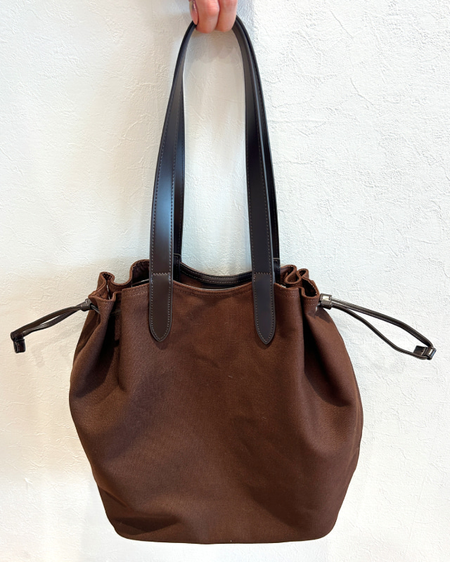 A4書類やペットボトルもすっぽり入る、バケット型の「キャンバストートバッグ」。サイドのドローストリングを絞って形をアレンジできます。内側に6つもポケットがあるので、スマホやリップなど細々としたものを収納できるのが嬉しいポイント。軽やかなキャンバス生地が春の通勤バッグにぴったりです。