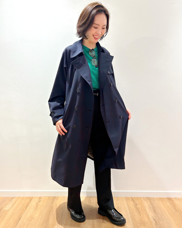 寒暖差のある春の通勤にぴったりのトレンチコート。大きめシルエットでばさっと羽織れて着心地も抜群。