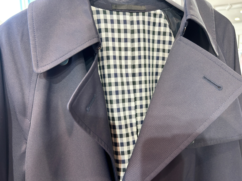 裏地のチェック柄が素敵で、袖をまくったときにさりげなく見えるのがおしゃれ。