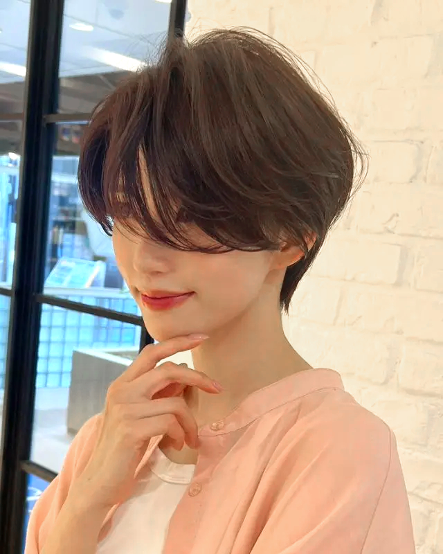 ショートヘアで女性らしく印象チェンジしたい人におすすめのスタイル。ボリューム調整もしやすく、お手入れも簡単なので時短を求める人にも◎。