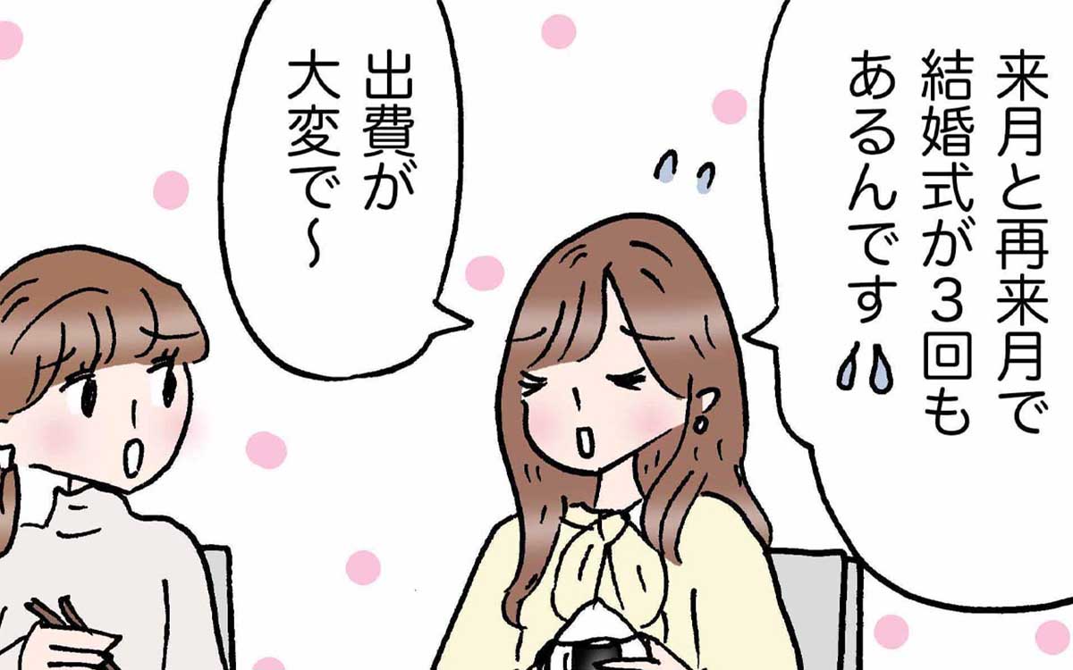 来月と再来月に結婚式が3回もある、キレイ田さん。