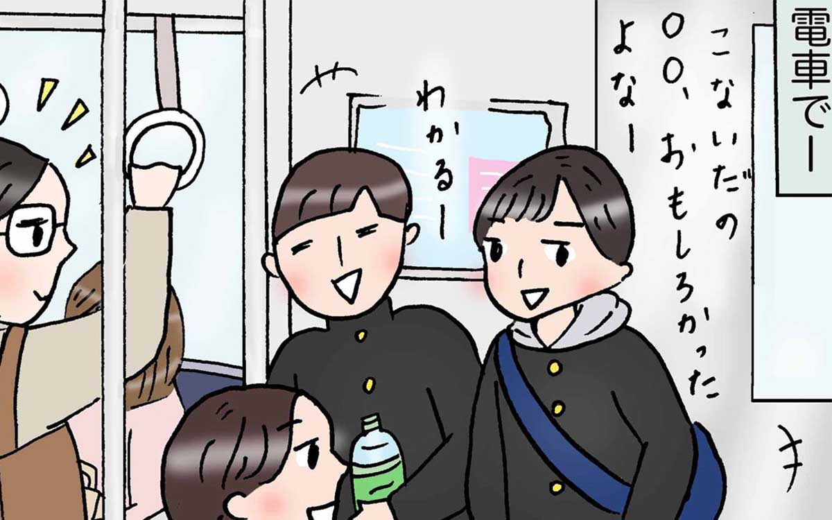 ある日、電車に乗っていると、高校生たちがテレビの話題で盛り上がっています。