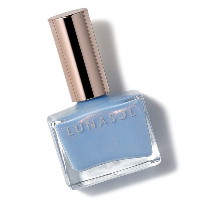軽やかに透けるグレイッシュなペールブルー。多彩な光が輝き、指先をツヤで彩る。速乾性もばっちり。カネボウ化粧品 ルナソル ネイルポリッシュ EX02 ¥2,200(2022年1月21日限定発売)