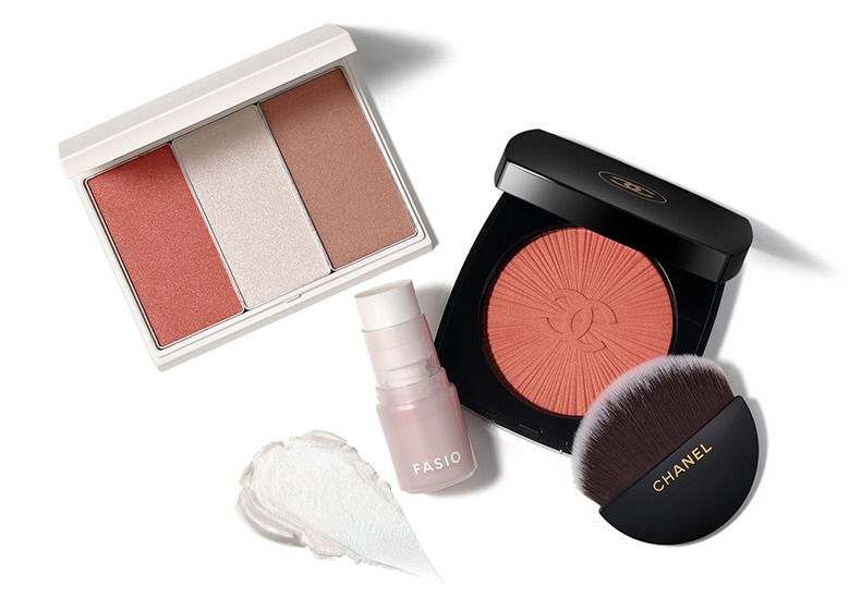 〈右〉柔らかに包み込む地中海の光のように、頬にも温もりのあるオレンジベージュ系のカラーを。シャネル ブラッシュ ルミエール ペッシュ ロゼ ¥9,020(2022年1月7日限定発売)