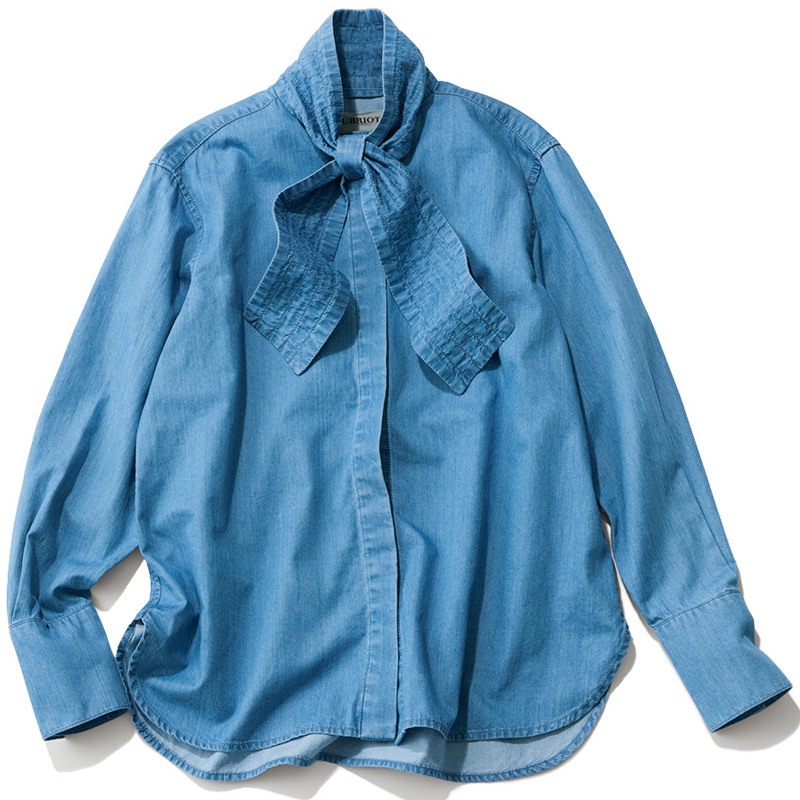 ブラウス¥37,400・デニムパンツ¥33,000(オブリオ)