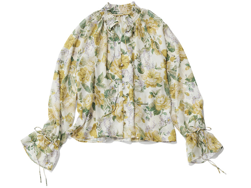 一枚で着るには勇気がいる花柄も、ブラウスならインナー使いで挑戦しやすい。