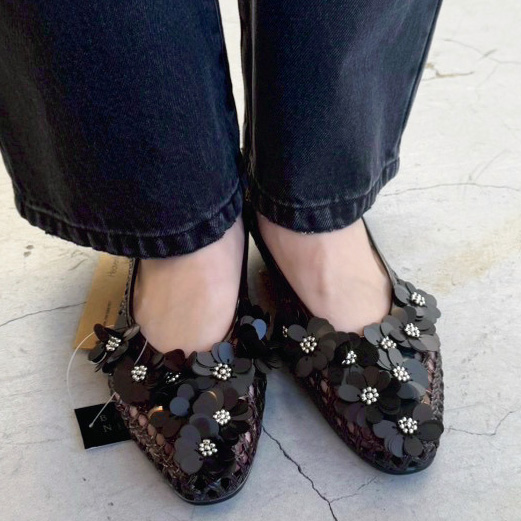 「ブラウスやアウターもかわいかったのですが、花モチーフがちりばめられたシューズにグッときました。リアルバイしたい!」(オッジェンヌ 水上友里さん)