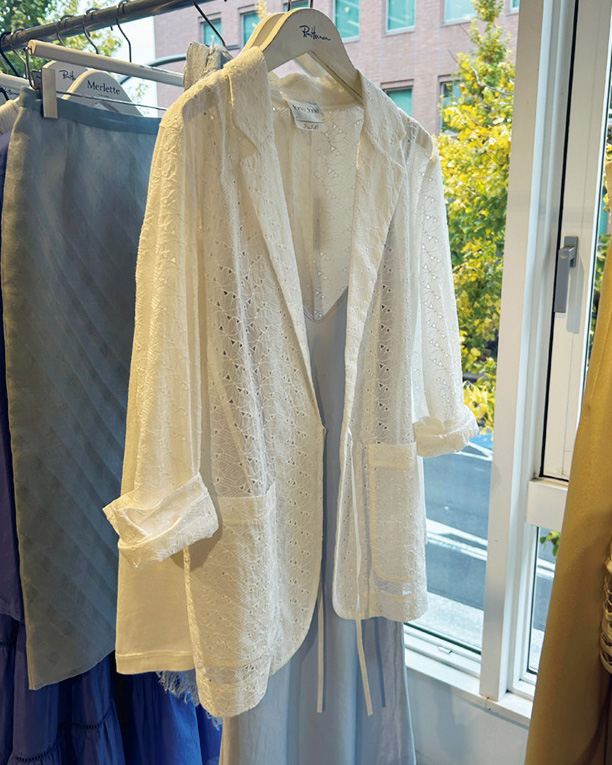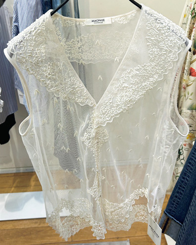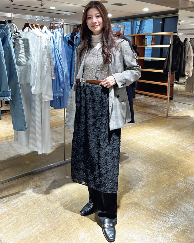 「スカートやパンツの裾にレースがドッキングされていたりと、各所でレースを発見! 大人でも使いやすいよう、アレンジされています。」(スタイリスト 東 美穂さん)