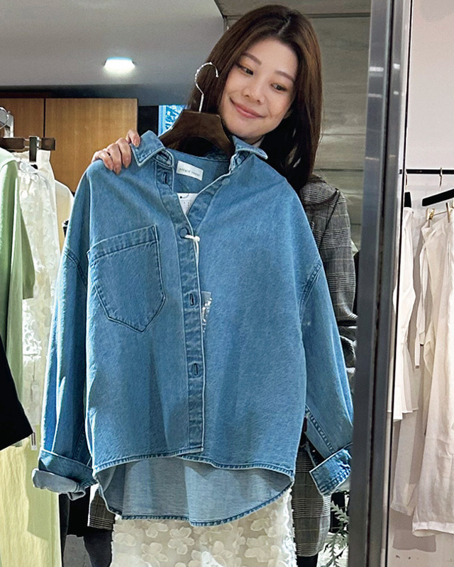 「ふだんからデニムは大好きなのですが、こういう大きめのシルエットは初めてで…! はおるだけでこなれ感が手に入るので、すごく気に入りました。」(オッジェンヌ 松浦璃子さん)