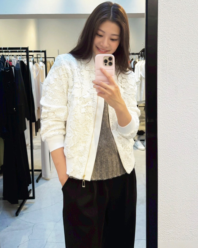 「レース素材のメンズっぽいブルゾンが個人的なツボでした。そういう甘×カジュアルの組み合わせが今の気分にぴったりです♡」(オッジェンヌ 片田亜莉紗さん)