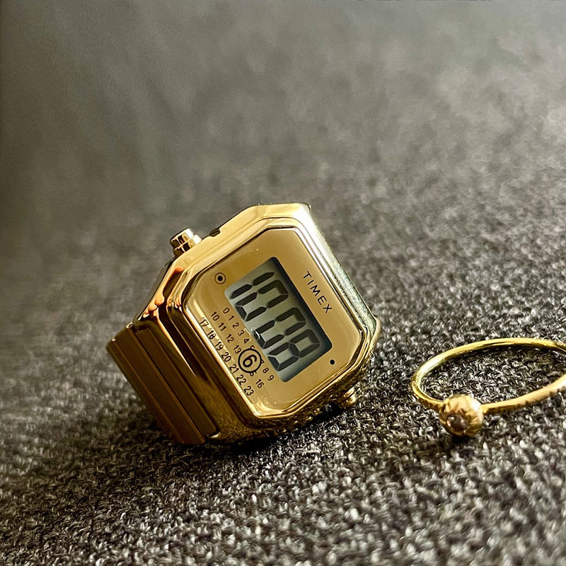 いちばん愛用している時計をメンテナンスに出しているのですが、意外と時間がかかっており、手持ち無沙汰な状態。そんなときに手に入れたのが、このMM6とTIMEXがコラボした、リングウォッチでした。左手の人差し指につけることが多いのですが、手元がグッと盛り上がるのと、さりげなく時間がチェックできる機能性もあって、ものすごく重宝しています!イエローゴールドのピンキーリングと合わせるのが、お気に入りのコーディネートです。