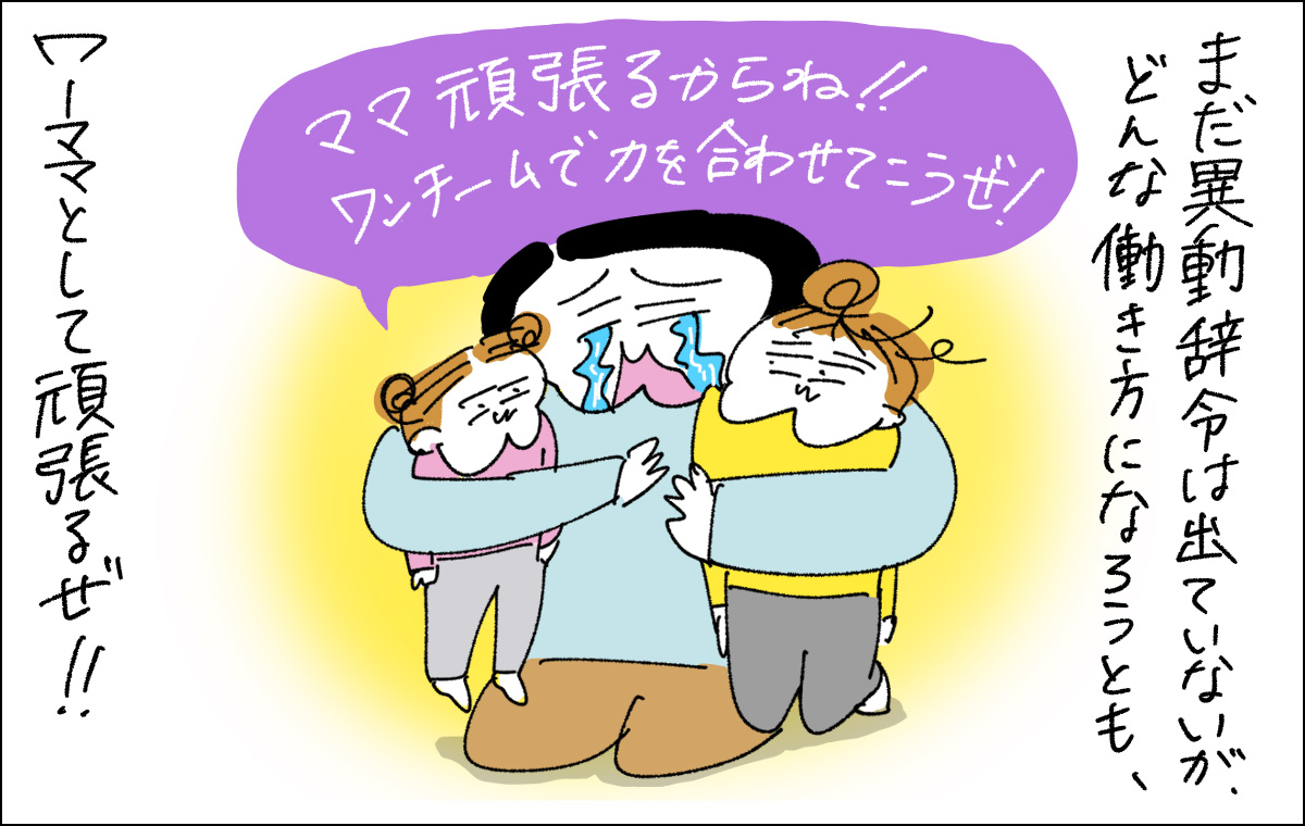 働くママなら誰もが一度は経験したことのある、思わず「わかる~!」と叫びたくなるようなエピソード= 「#ワーママあるある」。自身も2児の母であるイラストレーター・カミナカケロヨンさんがリアルなエピソードを4コマ漫画にしてお届け!人事異動発令前のママの揺れる心をお届けします。