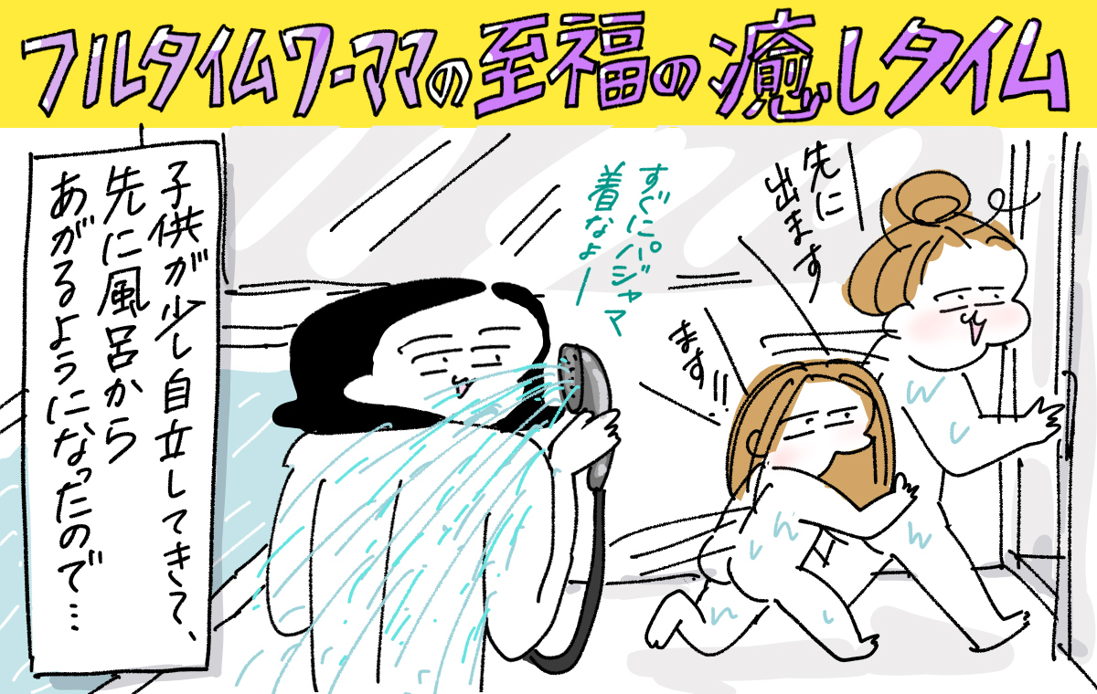 働くママなら誰もが一度は経験したことのある、思わず「わかる~!」と叫びたくなるようなエピソード= 「#ワーママあるある」。自身も2児の母であるイラストレーター・カミナカケロヨンさんがリアルなエピソードを4コマ漫画にしてお届け!今回は、ママの至福の癒し時間について。