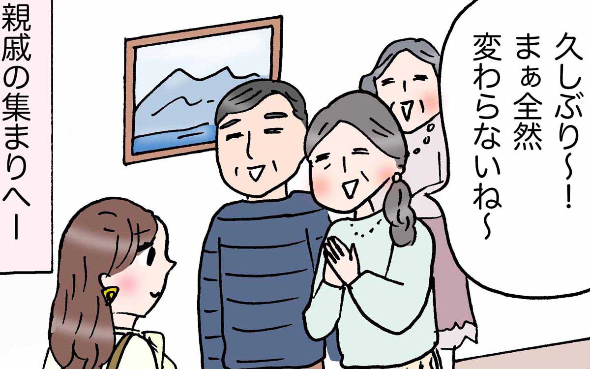 働く女性の“あるあるネタ”を4コマ漫画でお届け。人気イラストレーター・村澤綾香さんによる描き下ろしの毎週土日月の連載です。今回は、親戚の集まりでの出来事。