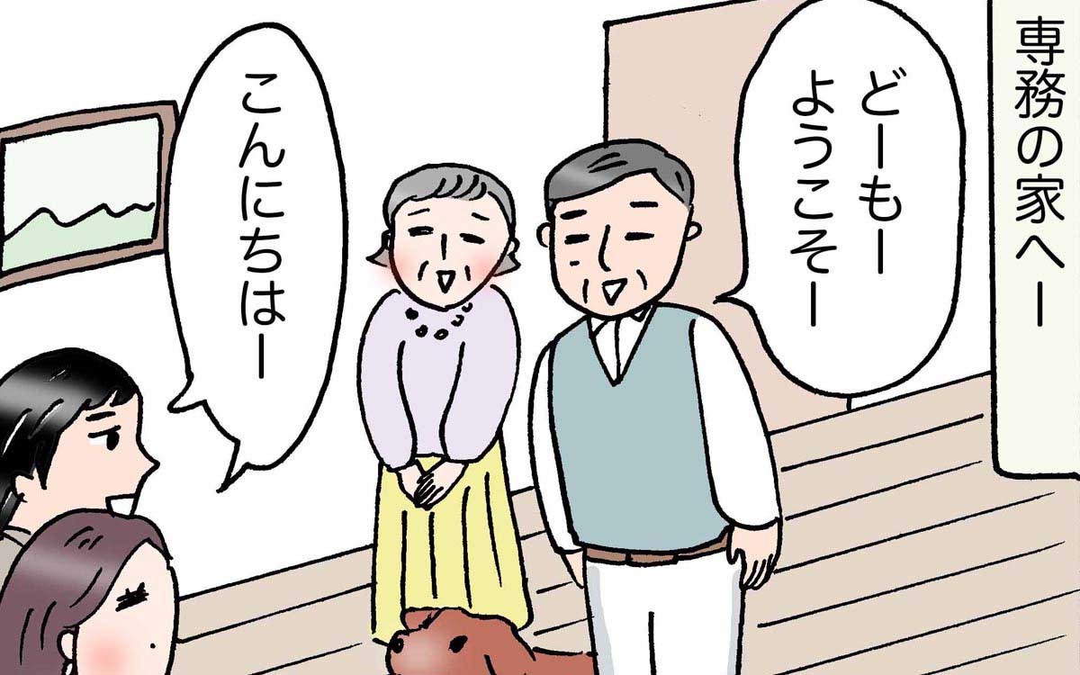 働く女性の“あるあるネタ”を4コマ漫画でお届け。人気イラストレーター・村澤綾香さんによる描き下ろしの毎週土日月の連載です。今回のお話は、専務の家での出来事。