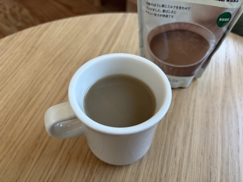 注ぐとほうじ茶の香ばしさがほんのり漂い、控えめだけど優しい雰囲気♡ 170gで10杯分ですが、味はやや薄めなので、粉を多めに入れると◎。粉を多めに入れたらしっかりコクが出ましたが、甘すぎずとても飲みやすかったです! お湯ではなくミルクで作ると、よりまろやかでひと息タイムにぴったりの一杯になりました。