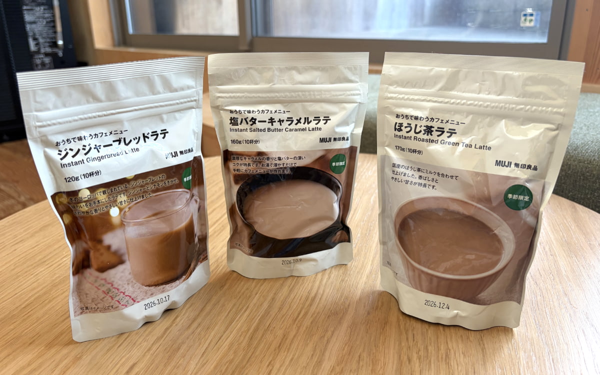 どのラテもそれぞれ魅力が違って、どれを選んでもひと息タイムにぴったり♡ 甘く濃厚な塩バターキャラメル、やさしいほうじ茶のコク、スパイスしっかりのジンジャーブレッド… 390円で楽しめるコスパの良さも嬉しいポイントです。朝や午後、無印のラテでほっこりする時間をぜひ味わってみてくださいね。