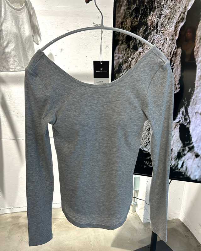 一枚で着られるデザインのカップ付きバックオープンTロング。背中を開けたバックオープンデザインで、大人の抜け感が出せるロンTだと思います。インナーに困りがちな背中開きでも、一枚でさらっと着られるのが嬉しいポイント。