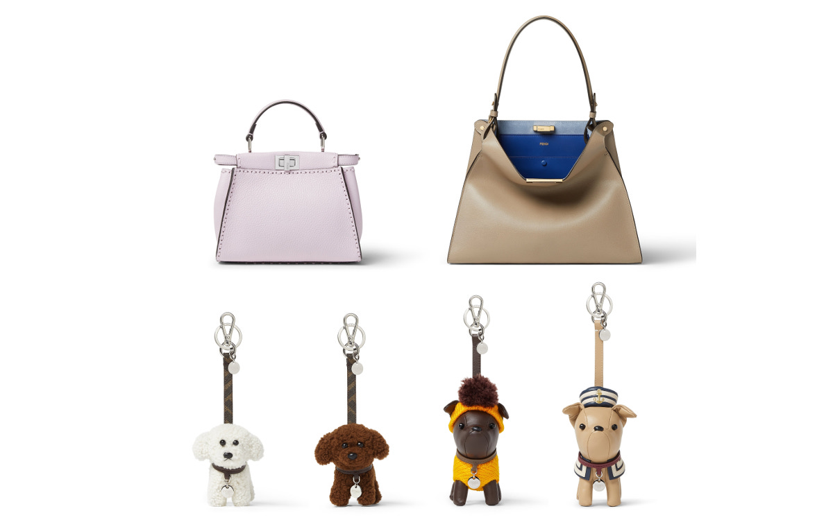 バッグのパーソナライズを楽しめるチャームコレクションも豊富にラインナップ。愛らしいドッグチャームやマルチカラーの「サニーサイドフラワー」のチェーンチャーム、フローラルパターンと「FF」ロゴをデザインしたシルク製のバンダナチャームがアイコニックなバッグを彩ります。