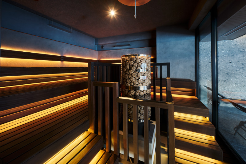 ▲大人数でも入れる本格サウナ。