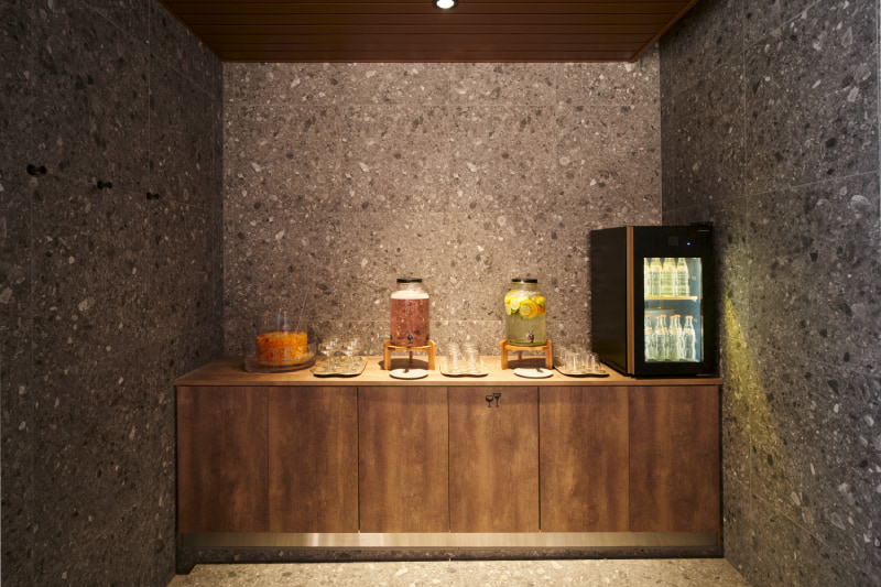 ▲水分チャージも忘れずに。フルールウォーターが美味しい。
