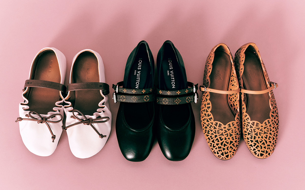 「ここ数年の一大トレンドとも言える〝メリージェーン〟。甘くロマンティックで、バレエのムードも感じさせるこの靴は、今シーズンもさまざまなブランドから提案されています。素材感やトウのシルエット、ストラップのあしらいなど、ますます広がる表現の幅から目が離せません」(渡辺さん)