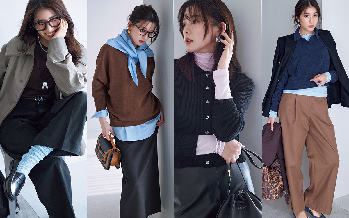 淡い色を主役にするなら、ネイビーやブラックで引き締めたり、袖口や足元など小面積で効かせたり。さらには、パステル×パステルの高度な配色も、バランスさえ守ればぐっと洗練された印象に。大人だからこそ楽しめる、攻めのスタイリングをお見せします。パステルは小面積でも効果絶大。まだ苦手意識がある人こそ、ぜひ挑戦を!