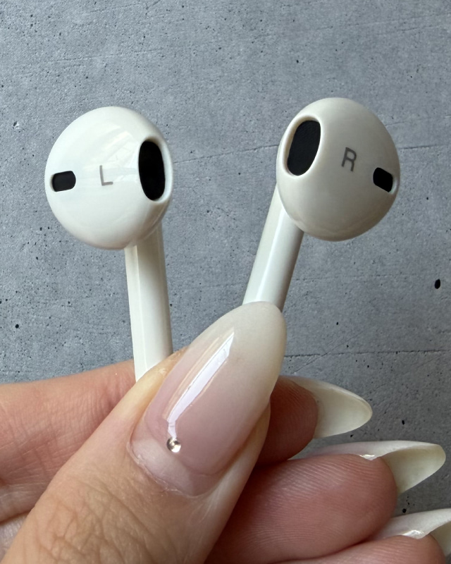 イヤホン部分はフラットな形状。耳に当ててみると、耳のくぼみに自然に収まるようなフィット感がありました! 私は耳が小さい方なのですが、装着してみると圧迫感はあまりなく、軽いつけ心地。イヤーピースがないタイプなので、耳に入れたときの違和感も少なめ。試しに2時間ほどつけたまま作業してみましたが、痛くなったのは最後の方で、普段使いならそこまで気にならなそうな印象です!