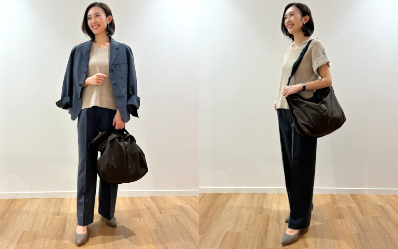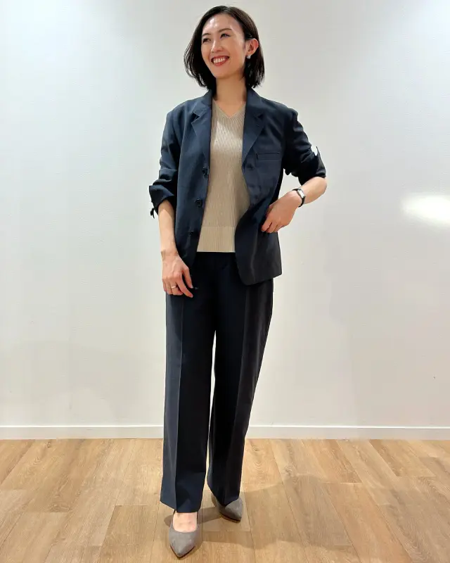 「テーラードジャケット」と「ハイライズストレートパンツ」は、ブラック、ダークグレイ、オリーブの3色展開。私はダークグレイを試着しましたが、モードなオリーブも素敵です。