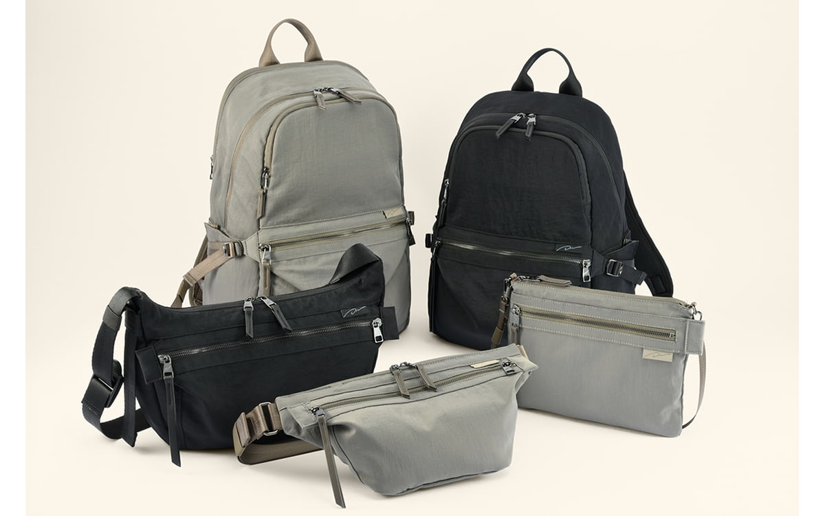 ラインナップは、サコッシュ、クロスボディ、ショルダー、リュック大小の5型。全型共通でスエード調素材を内装に採用した「スマートフォンポケット」、視認性が高い「シースルーポケット」、鍵やパスケースなどを繋げておける「キーストラップ」を配置しています。カラーはブラックとウォームグレーの2色展開です。