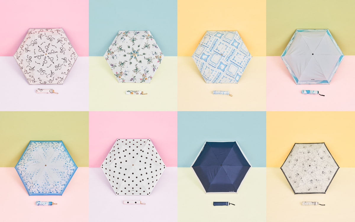 昨年も大好評だったコラボレーションが、今年はラインナップを拡充し、16ブランドから全25種類で展開。すべて上昇温度-18.4℃(※1※2※3)、UVカット率100%(※4)、遮光率100%(※4)、遮熱率52%以上の機能性を誇り、持ち運びにも便利な折り畳み式。コンパクトで軽量、撥水コーティングもしているので雨天時も使用可能です。