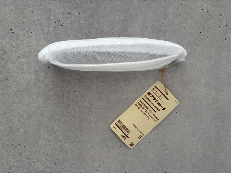次に紹介するのは、サイドメッシュ歯ブラシポーチ。白いシンプルなデザインで、汚れがついたときに気づきやすいのが個人的にいいなと思ったポイント。気づかないうちに汚れている… みたいなことが少なそうです。サイドがメッシュ素材になっているので通気性も◎。濡れた歯ブラシを入れても乾きやすそうなのが嬉しいです。