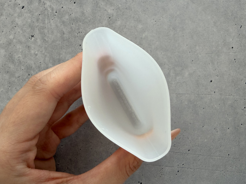 次は、携帯用シリコーンカップ。シリコーン素材でできた携帯用コップで、折りたたむとかなりコンパクトになるのが特徴です! 想像以上に薄くて「これ本当にコップになるの?」と思うくらいのサイズ感でした◎。