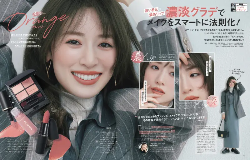 スマートワードローブと合わせる通勤メイクは、薄すぎては締まらないし、しっかりコンサバに仕込むと近寄りがたいから、品のよさと抜け感のバランスが大切。