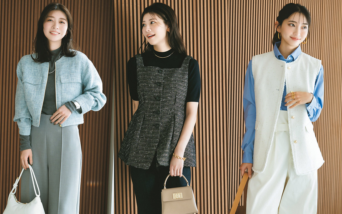 手持ち服に一点投入するだけで、都会的な装いへと導いてくれるツイード。〝シルエット〟に注目するのが、ツイードの骨格タイプ別のベストな選び方。