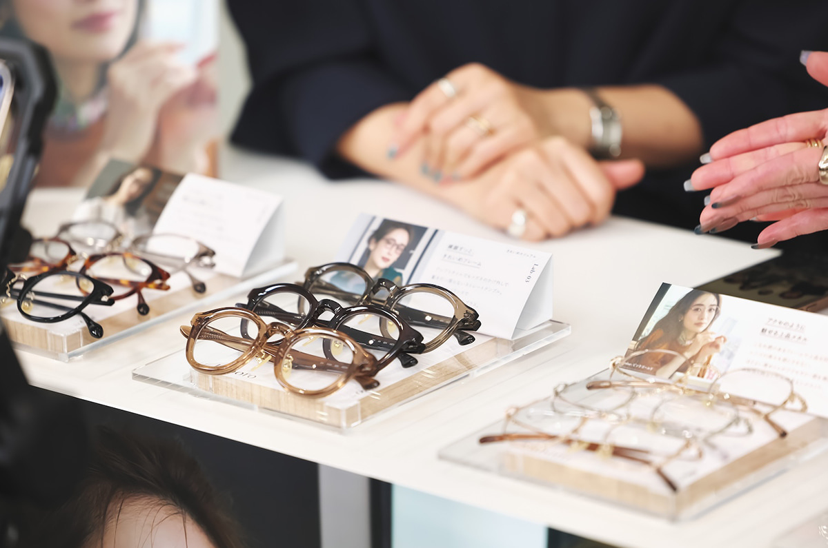 合わせやすさの理由は「あえて装飾をつけず、デザインをシンプルにまとめているから」と冨澤さん。「通常のメガネよりテンプルが短く、ストレート気味になっているのも特徴」とさらなるこだわりを教えてくれました。